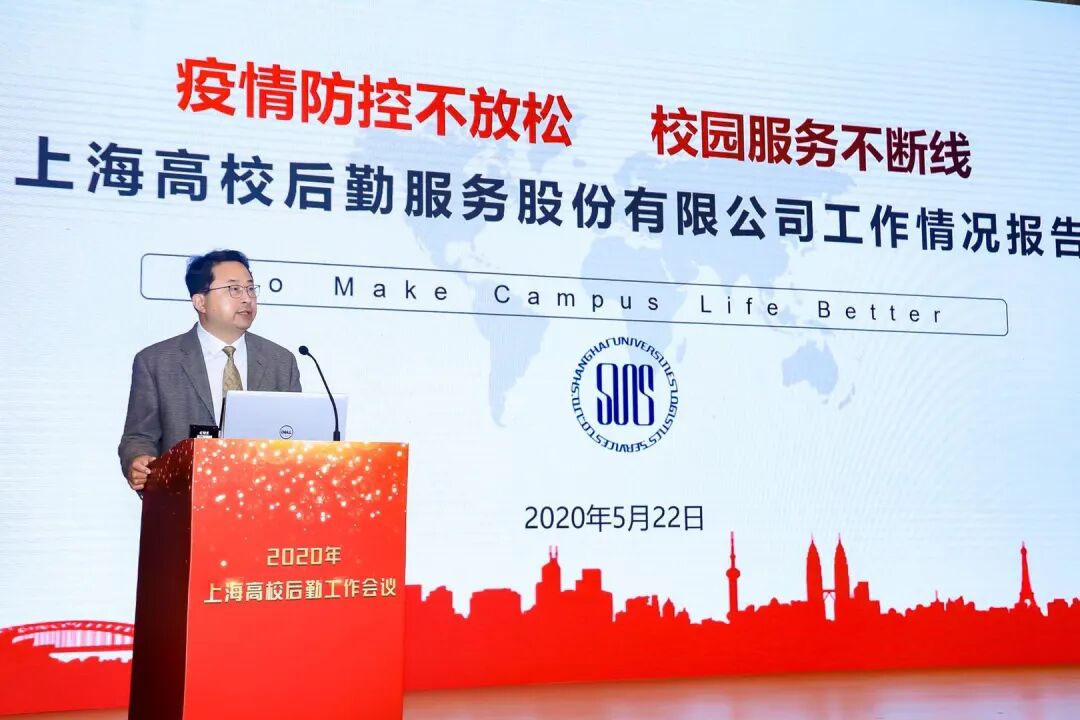 上海高校后勤服务股份有限公司总经理陈辉作题为《疫情防控不放松,校园服务不断线》的专题报告,从疫情期间高后公司开展物资保障工作情况、校园消费扶贫及保供稳价创新团体采购三个方面介绍了高后公司近期及未来的工作方向。