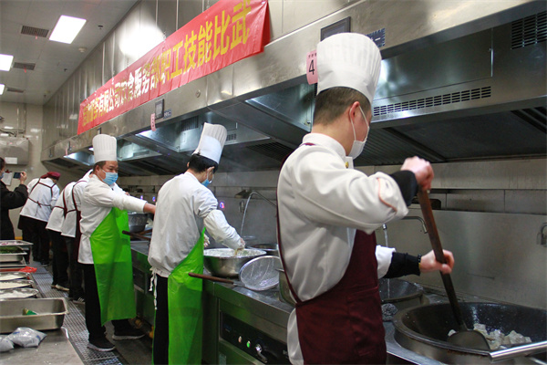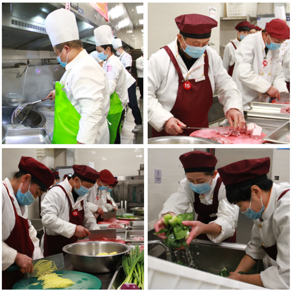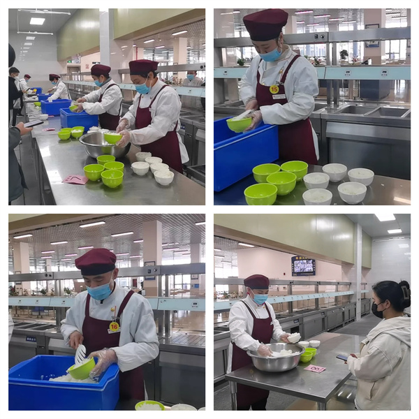 此次比武设红案组、白案组、服务组三个项目,共计37名选手参加比赛。红案组比赛分为初加工、切配和厨师烹饪三个环节,要求比赛团队在规定时间内完成糖醋里脊、回锅肉、清炒土豆丝和炒青菜四种菜品;白案组要求选手在规定时间内完成油条、肉包、麻球和自选面点的制作;服务组以盛出米饭的时间和重量为标准对选手进行考查。